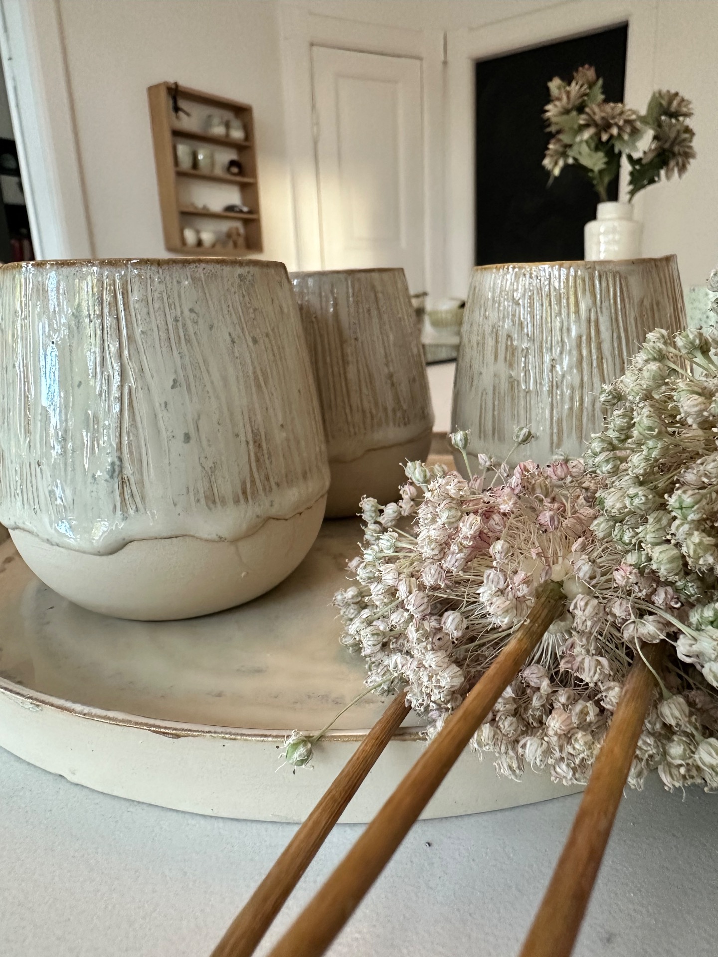 I 2001 var jeg på mit første keramikkursus - siden har jeg været fascineret af, hvordan et råt stykke ler kan forvandles til noget, der er både smukt og brugbart. Selvom jeg efterfølgende er uddannet billedkunstlærer, har passionen for keramik mest haft sin plads i fritiden, som et sted hvor tid, ro og kreativitet mødes. For et par år siden, tog jeg dog mod til mig, og begyndte at sælge min keramik. Interessen voksede hurtigt og det, der startede som en personlig hobby, har i dag udviklet sig til en lille virksomhed.